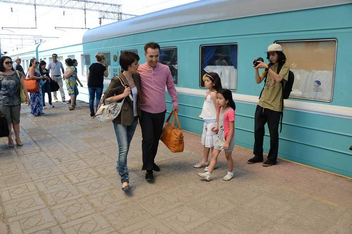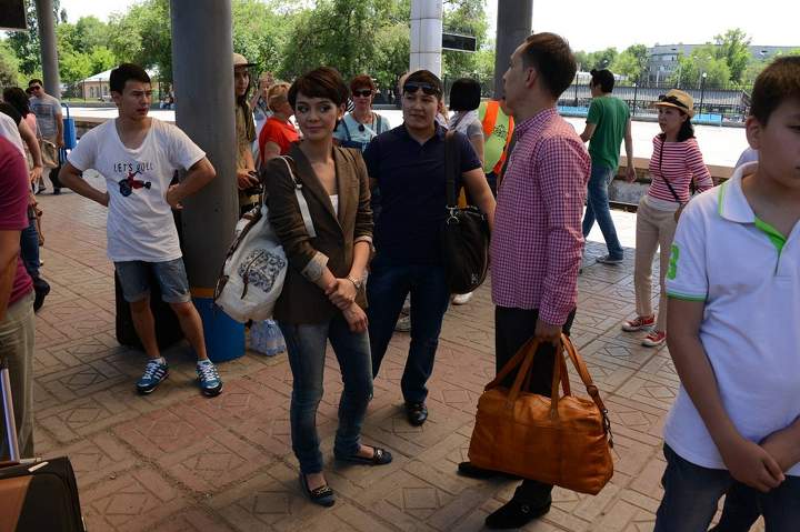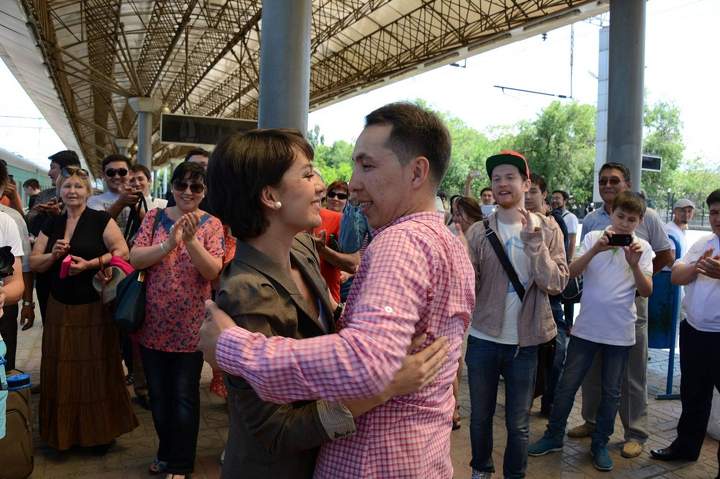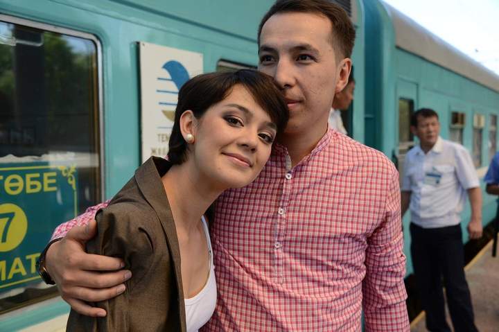 По замыслу акции Максат провожал на перроне вокзала в путь свою возлюбленную, роль которой исполнила Айсулу.