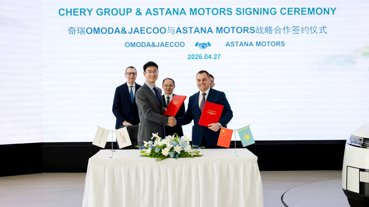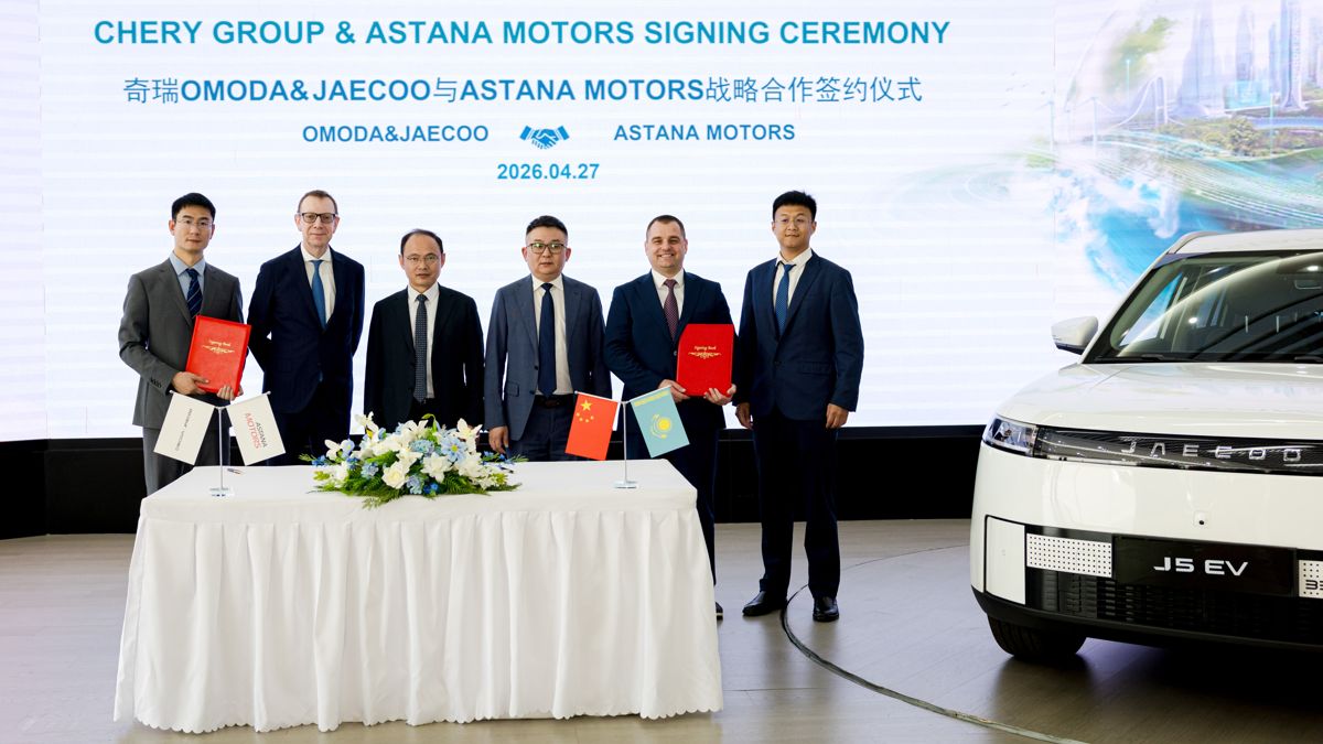 Astana Motors получила право официально представлять бренды OMODA и JAECOO. 27 апреля 2026 года в городе Уху (КНР) дистрибуторское соглашение подписали Александр Абрамов, директор дистрибуции OMODA и JAECOO в Казахстане, и Чэнь Лэй, региональный директор OMODA и JAECOO.