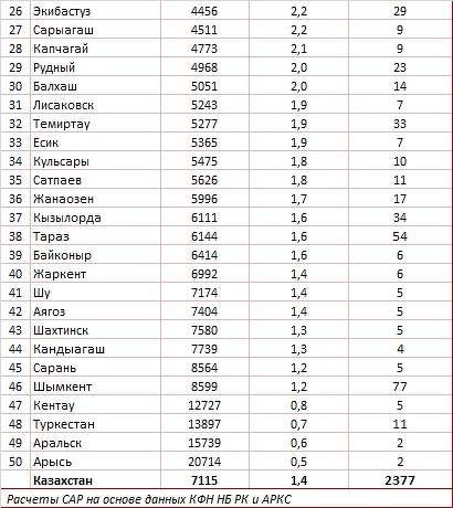 Среди ТОП-50 городов Казахстана по уровню проникновения филиальной банковской сети в тройке лидеров - Атырау, Актау и Аксай