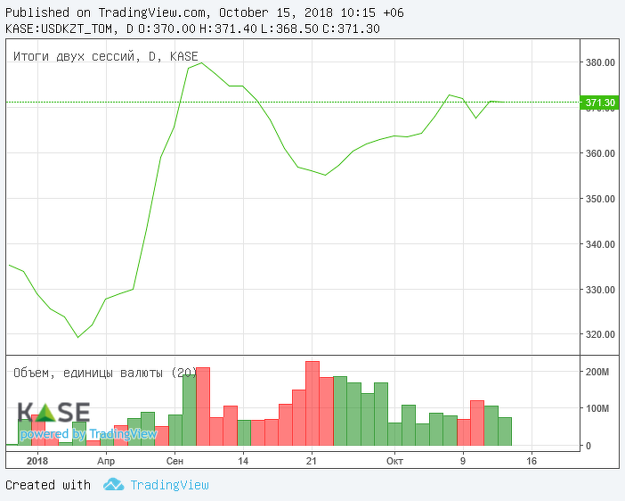 На текущий момент (10:22 AST) курс по паре USDKZT составляет 370,80 тенге за доллар, что на 77 тиынов выше уровня средневзвешенного значения предыдущих торгов.