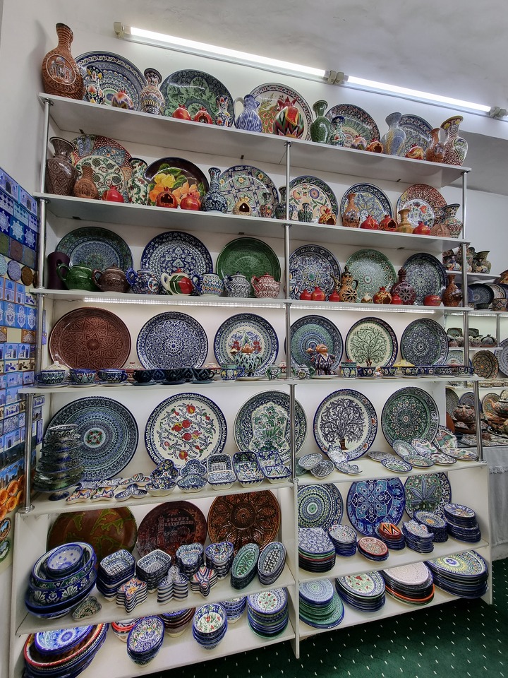 В поисках более изысканных сувениров можно пройтись по пешеходной улице Ташкентской, вдоль которой кроме базара и ресторанов расположилось множество торговых точек. Если заглядывать в уютные дворы, можно найти мастерские и центры ремесленников, где представлены различные керамические, текстильные и кожаные изделия, в том числе ручной работы, - чапаны, шелковые платки, наряды с национальными принтами, сумки, скатерти, покрывала и ковры.