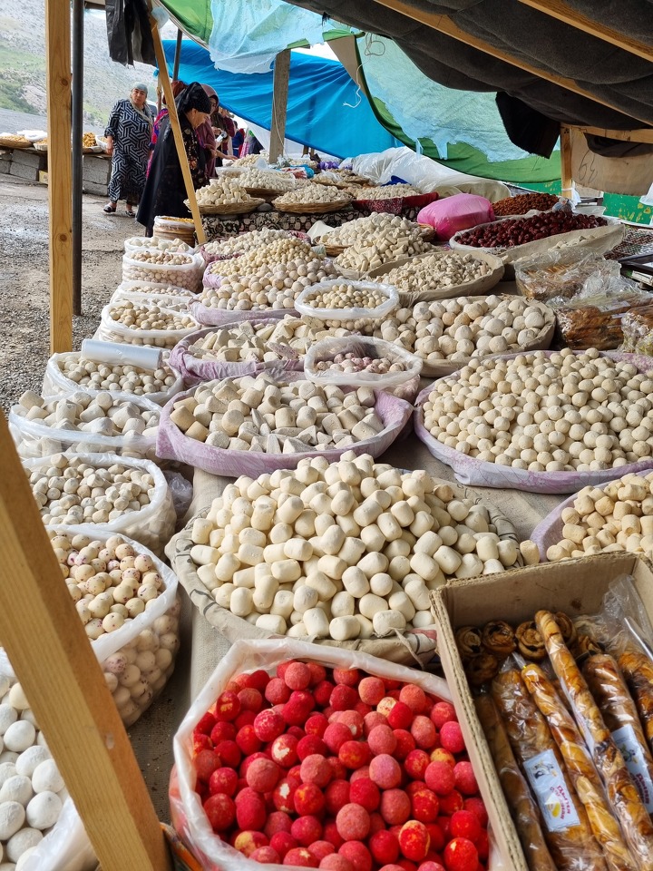 На обратной дороге в Самарканд можно заглянуть в одно из придорожных кафе с великолепным видом на ущелье и отведать тандырного мяса. Также можно остановиться у небольшого дорожного базара, где местные жители предлагают попробовать соленое лакомство – курт. Здесь от его разновидностей разбегаются глаза. Каких только нет – с базиликом, перцем, мятой и другими специями, из козьего молока, разных размеров, степени солености и твердости.