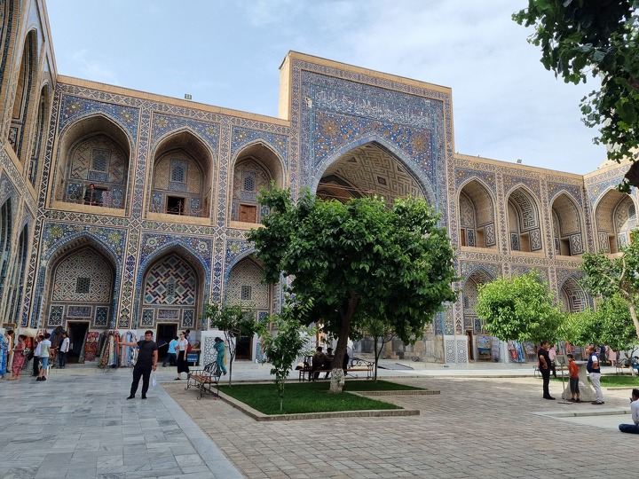 Прогуливаясь по уютным внутренним дворикам медресе, стоит заглянуть внутрь – подняться по узким лестничным проходам на второй этаж в поисках красивых локаций, присмотреть интересные сувениры в торговых точках и даже получить различные мастер-классы, например, по определению техники и места изготовления того или иного узбекского керамического изделия по звуку.