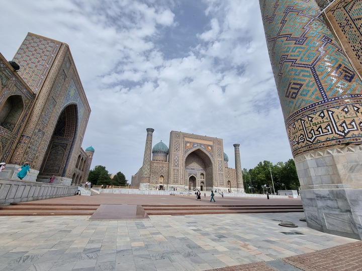 Самая знаменитая достопримечательность Самарканда, которая притягивает туристов со всего мира, – площадь и ансамбль Регистан. Регистан в переводе с персидского означает «песочное место», и во времена правления Амира Тимура он являлся главной торговой площадью, через которую проходил Шелковый путь. В XV веке государством правил внук Тимура Улугбек, который был ученым-астрономом. Он решил превратить это место в научный центр, построив один из лучших духовных университетов мусульманского Востока того времени – медресе Улугбека. Последующими правителями в XVII веке были возведены медресе Шер Дор и Тилля Кори, где также находится главная мечеть города. Эти три медресе сейчас входят в состав ансамбля Регистан и поражают своими размерами и красотой четкой симметричной облицовки, выполненной из ярко-голубой майолики и мозаики.