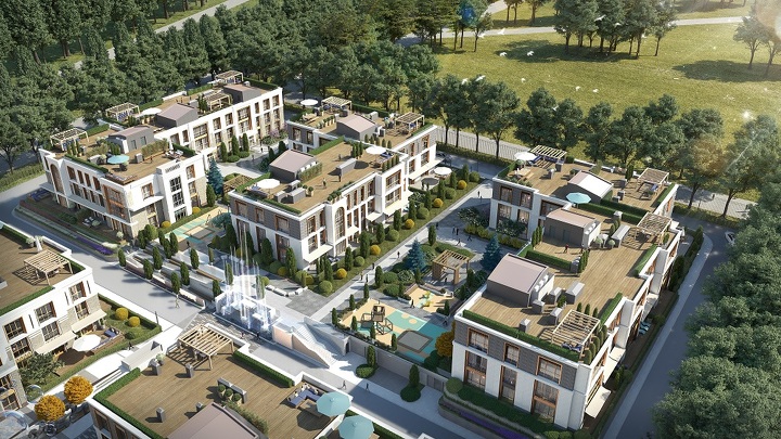Архитектура выполнена в современном европейском стиле. «Роскошный минимализм», – так можно назвать его иначе. Каждый блок отличается друг от друга особенными деталями и представляет собой современный квартал с признаками загородных усадебных построек.