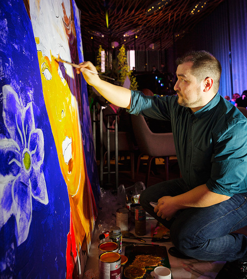 В зале «колдовал» известный казахстанский художник Серик Буксиков.