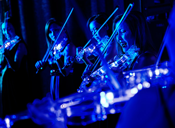 Тон вечеру задала певица Маргарита Бэльская. После гостей окутали звуки оркестра Марата Бисенгалиева. Музыканты играли на необычных неоновых инструментах, и в темноте были немного похожи на волшебников.