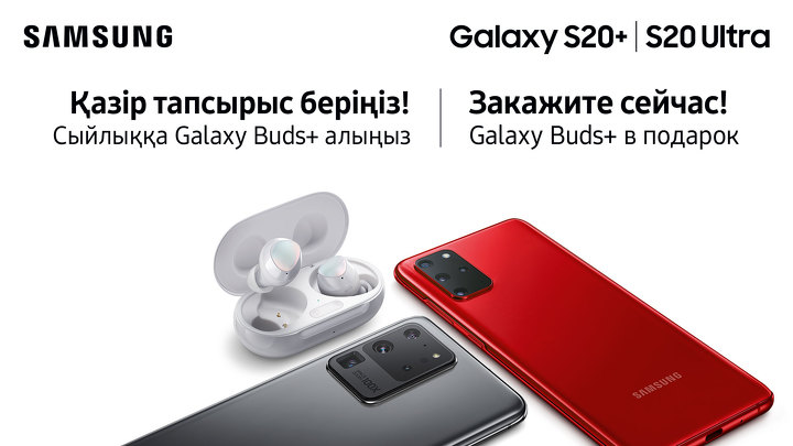С 12 февраля по 9 марта в Казахстане можно сделать предзаказ смартфонов Galaxy S20, Galaxy S20+ и Galaxy S20 Ultra. Первые обладатели новинок по предзаказу получат в подарок инновационные беспроводные наушники Galaxy Buds+.