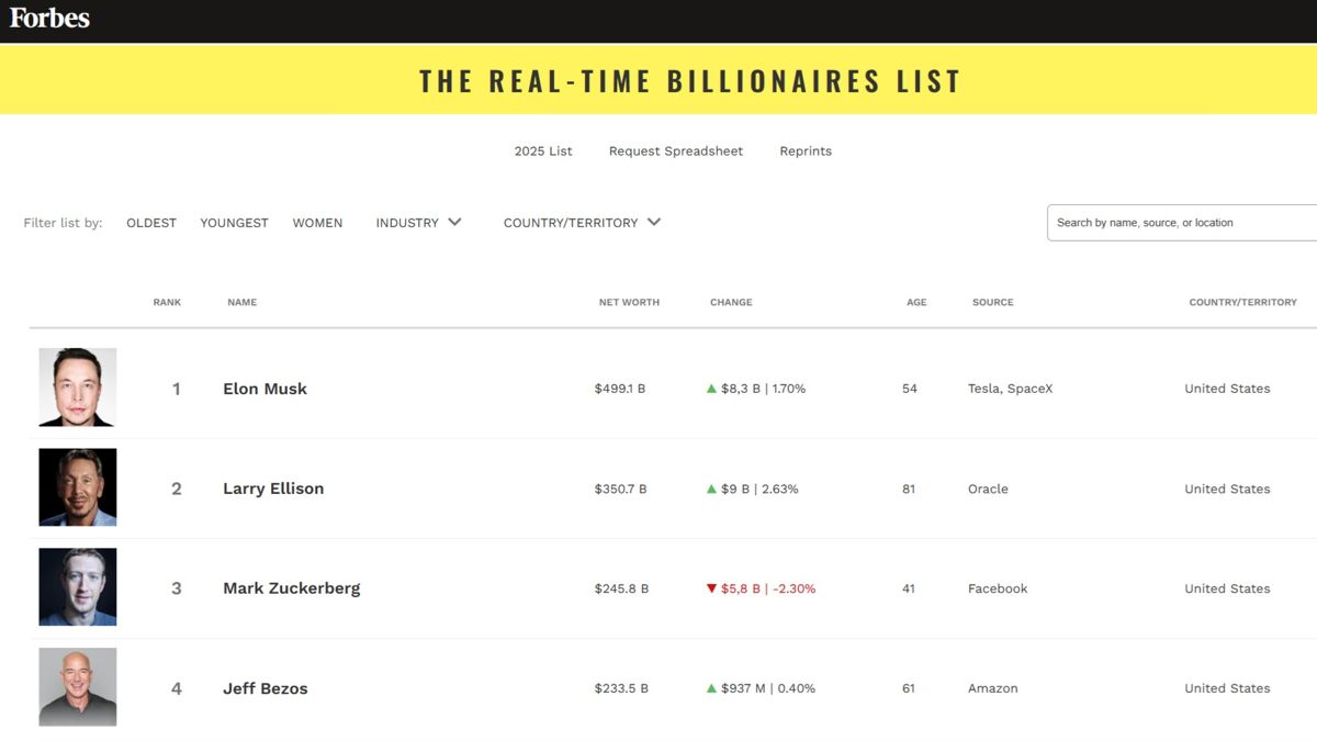 По состоянию на 13:00 2 октября по времени Астаны, по данным Forbes Real-Time Billionaires, сейчас состояние богатейшего человека в мире оценивается в $499,1 млрд.