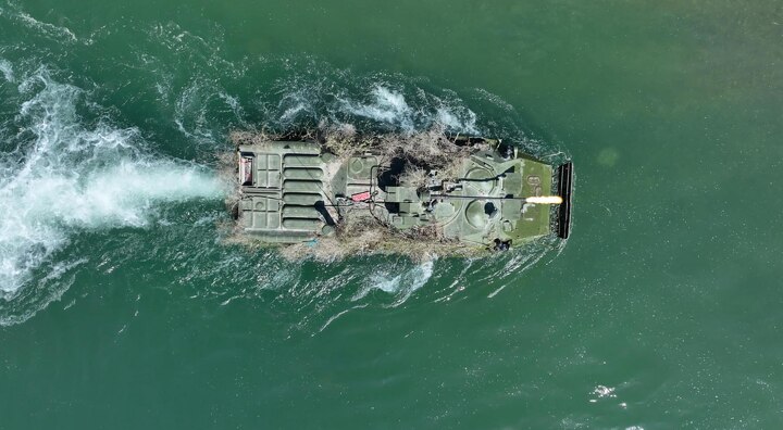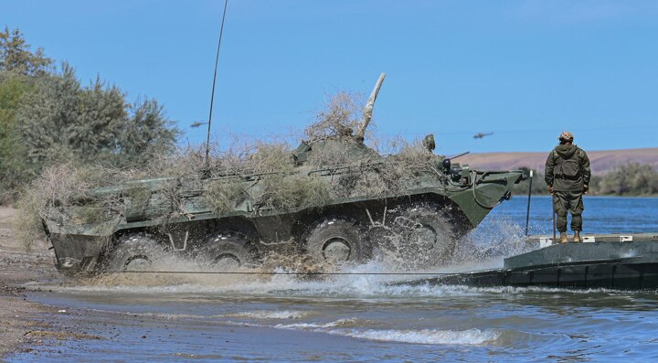 Бригадные тактические группы Десантно-штурмовых войск при поддержке авиации, а также во взаимодействии с подразделениями Сухопутных войск и ССО отработали тактические действия по захвату назначенного рубежа противника на противоположном берегу с преодолением водной преграды.