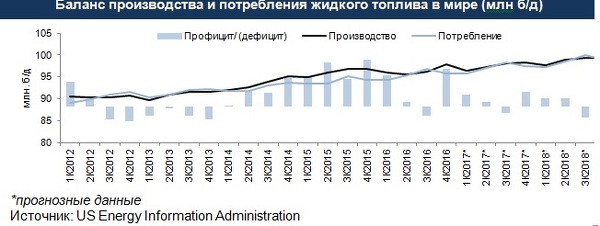 Кроме того, положительный эффект может быть достигнут за счет увеличения спроса в 2017. По прогнозам US Energy Information Administration, рост потребления в этом году составит 1,7%, а рост производства - 1,1%. В итоге профицит по итогам года должен составить 482 млн баррелей против 1 270 млн баррелей в 2016.