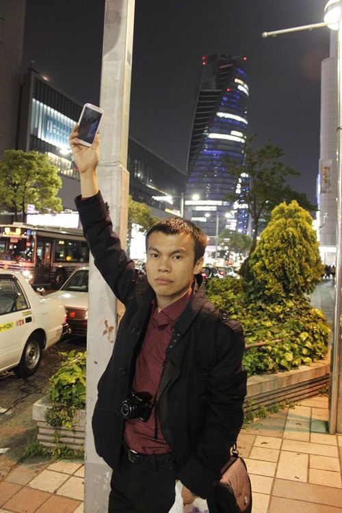 Куралбек записывает на телефон песню в Японии.