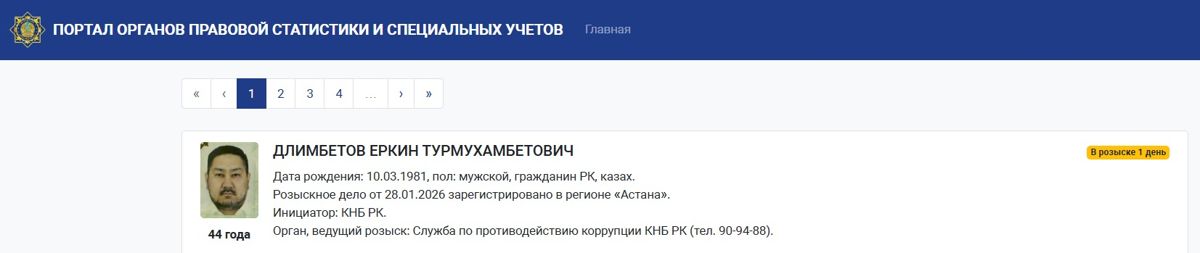 Розыскное дело на 44-летнего главу OrdaMed зарегистрировано 28 января в Астане. Инициатор запроса и орган, ведущий розыск, — Служба по противодействию коррупции КНБ РК.