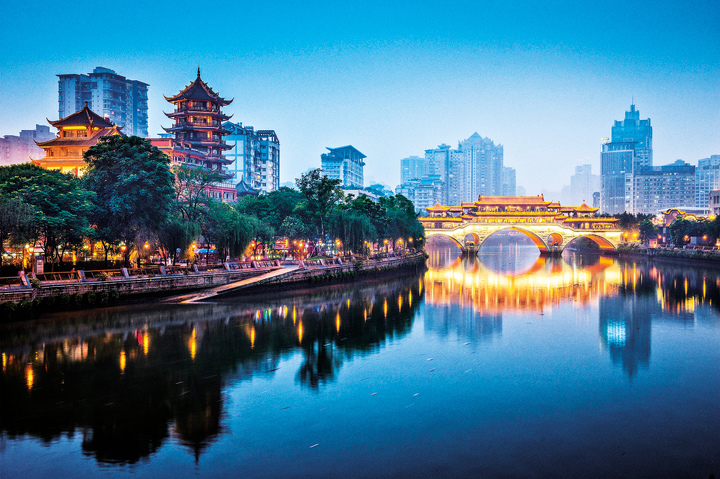 Что представляет собой Чэнду сегодня? Это один из двигателей западной программы развития Китая. Город специализируется на высокотехнологичных производствах. Наиболее успешными являются военная авиаиндустрия, автомобилестроение (промышленные мощности компаний «Тойота», «Вольво», «Фольксваген»), электротехника и IT-технологии. Стремительно развивается биофармацевтика. Чэнду считается крупным транспортным центром западного Китая, где пересекаются важные железнодорожные и автомобильные магистрали. Работают метрополитен и международный аэропорт. А Сычуаньская впадина является основным газодобывающим регионом страны.