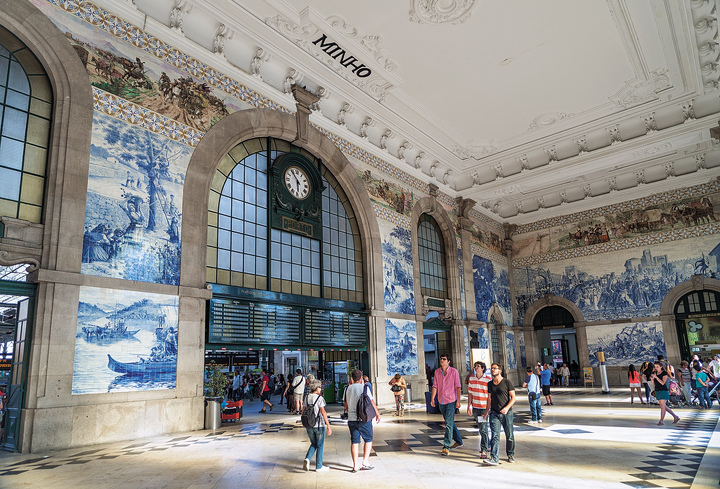 Местом схождения основных улиц в историческом центре – самом сердце Порту – является старый железнодорожный вокзал Сан-Бенту. Он невероятно красив из-за многочисленных панно азулезуж, на которых изображены различные моменты из истории города. Техника азулезуж, традиционная для Португалии, это роспись по керамическим глазированным плиткам, в основном в синих тонах, очень напоминающая делфтский фарфор или гжель. Вокзал был построен всего 100 лет назад и до сих пор является действующим, правда, сегодня там больше туристов, чем отправляющихся в поездку.