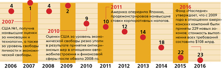 США – крупнейшая экономика в мире ($17,9 трлн), но с 2006 они потеряли 19 позиций, оказавшись теперь лишь на 23 месте. Сможет ли новая амбициозная администрация в Вашингтоне «сделать Америку великой» (для бизнеса) вновь? Слово вам, мистер Трамп.