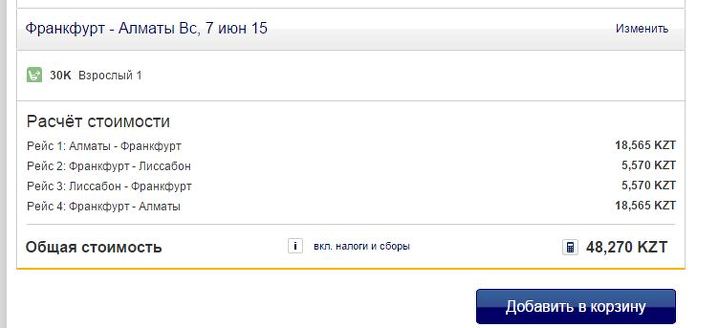 То есть, путешествуя из Алматы в столицу Португалии, надо будет доплатить за места в самолете до Франкфурта, и еще раз – за места в самолете из Франкфурта до Лиссабона.