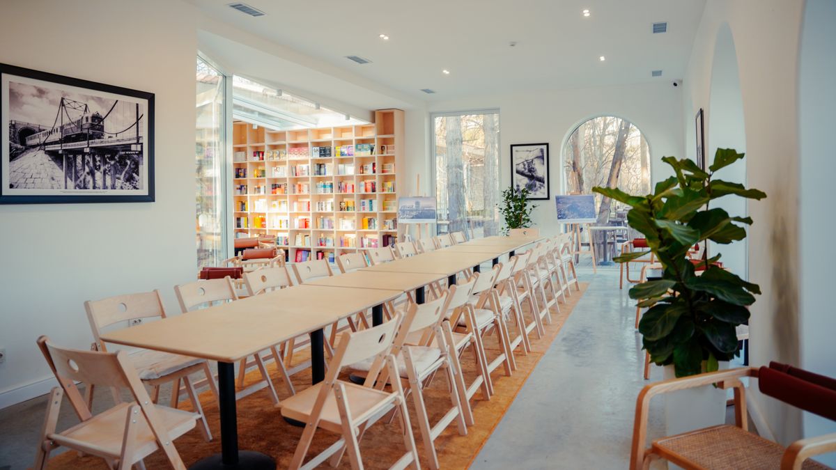 Кофейня с горячими и холодными напитками переводит библиотеку из категории «учреждение» в категорию «место». В меню также есть и камельчино — капучино на основе верблюжьего молока: локальная идентичность, поданная в современном формате.