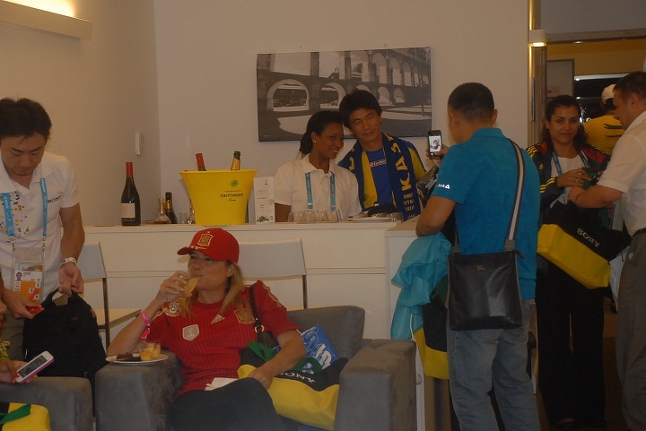 В отеле приглашающая сторона оборудовала Sony Hospitality Suite – нечто среднее между пресс-центром, красным уголком и комнатой отдыха, где с утра до вечера можно было выпить кофе и фреш, поюзать бесплатный Wi-Fi и посмотреть матчи World Cup на огромных ЖК-мониторах.