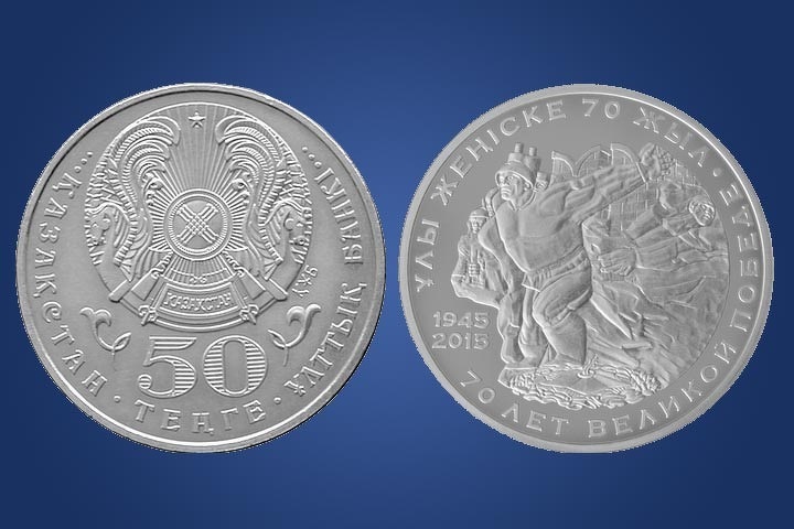 Национальный Банк Республики Казахстан сообщает о выпуске в обращение с 31 марта 2015 года памятной монеты «70 лет Великой Победе», посвященной 70-й годовщине Победы в Великой Отечественной войне 1941 – 1945 годов, из серебра «proof» качества номиналом 500 тенге и из сплава нейзильбер номиналом 50 тенге, говорится в сообщении.