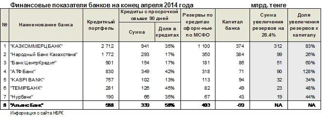 5 июня Альянс Банк опубликовал аудированную финансовую отчетность за 2013 год. Резкий прирост резервов (убытков) на проблемные кредиты в банке снова поставил вопрос ребром: какой же все-таки реальный уровень проблемных кредитов во всей банковской системе Казахстана?