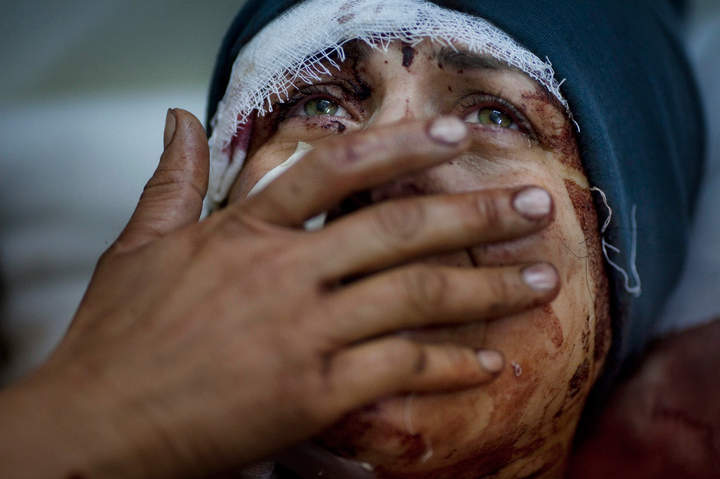10 марта 2012 года, Идлиб, Сирия. Аида плачет — она поправляется от ран, ее дом был разрушен снарядами сирийской армии, муж и двое детей погибли во время артобстрела.
