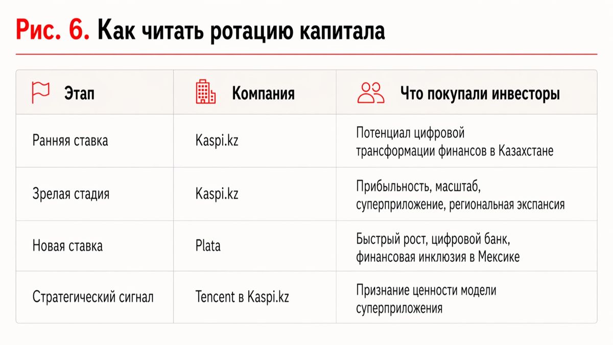 То есть сделка не выглядит случайной. Глобальный технологический игрок заходит в казахстанскую компанию в момент дорогих денег, высокой ставки и более жесткого отбора активов. Это усиливает главный тезис о том, что в новой финтех-экономике инвестор покупает не только выручку и прибыль, а глубину пользовательской привычки.