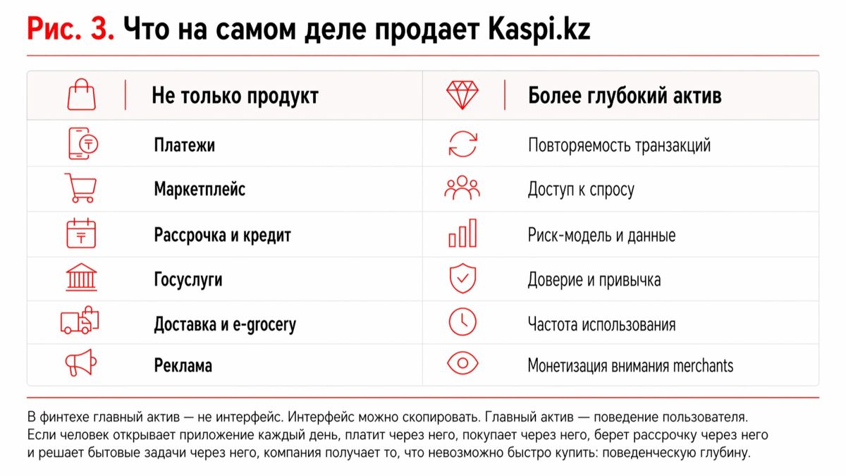 В финтехе главный актив — не интерфейс. Интерфейс можно скопировать. Главный актив — поведение пользователя. Если человек открывает приложение каждый день, платит через него, покупает через него, берет рассрочку через него и решает бытовые задачи через него, компания получает то, что невозможно быстро купить: поведенческую глубину.