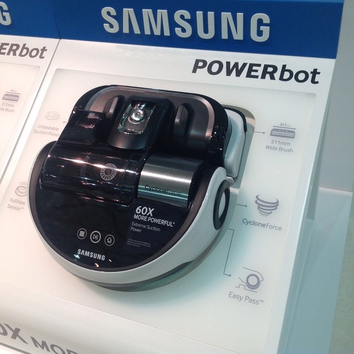 Еще одна новинка, представленная компанией Samsung Electronics – революционный робот-пылесос POWERbot VR9000. Робот, представленный публике, в первую очередь призван сэкономить время, которое хозяйки тратят на уборку дома. Модель оснащена технологией CycloneForce, которая обеспечивает мощность всасывания, в 60 раз превосходящую мощность предыдущих поколений роботов-пылесосов Samsung. Также встроенная в это чудо техники конусообразная камера позволяет фиксировать системе малейшие препятствия на пути робота, что обеспечивает ей идеальную способность ориентироваться в пространстве.