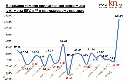 По данным исследования Нацбанка, в первом полугодии 2015 существенных изменений в кредитной политике банков второго уровня не ожидается, но некоторые банки уже ужесточили политику в отношении малого бизнеса. Темпы кредитования экономики Казахстана коммерческими фининститутами остаются на гораздо более низком уровне по сравнению с докризисными. Это связано с сохраняющимся ограничением доступа к внешнему финансированию и высокой долей проблемных кредитов в портфелях банков. Как показывает динамика, за последний год темпы объемов кредитования находятся на уровне возвратов. Стоит отметить, что в декабре 2014 выдана рекордная сумма займов.