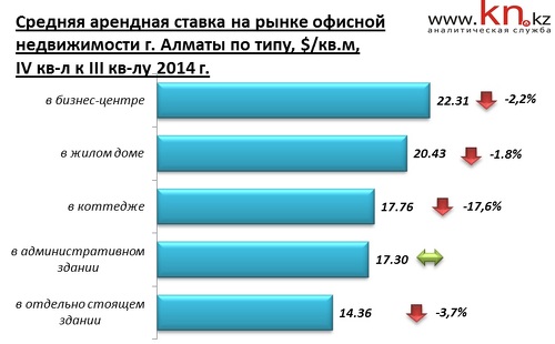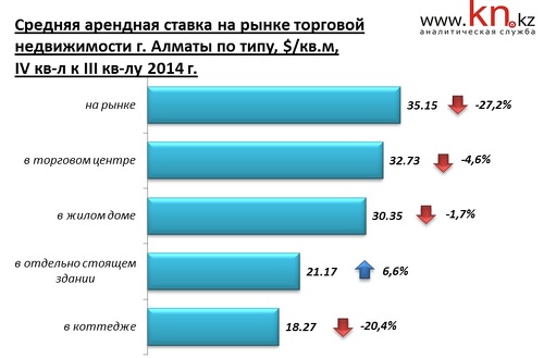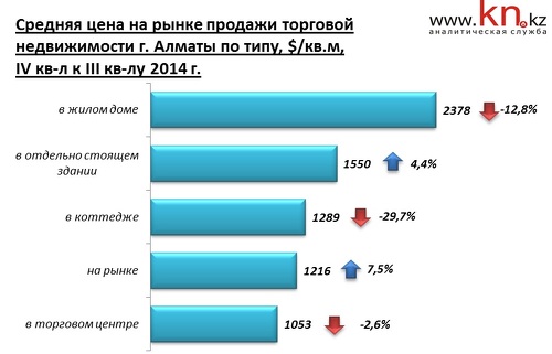 В Алматы на рынке продажи и аренды коммерческой недвижимости в IV квартале 2014 наблюдались следующие изменения по отношению к III кварталу 2014: