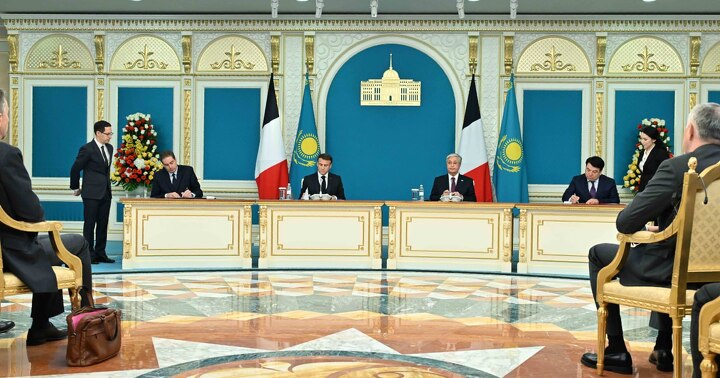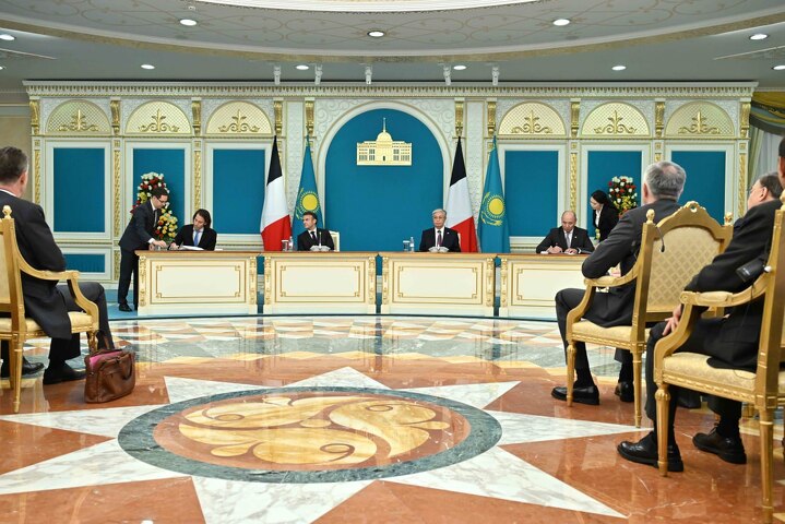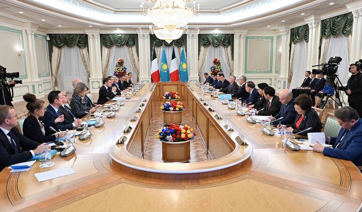 Президент Казахстана Касым-Жомарт Токаев и президент Франции Эмманюэль Макрон провели переговоры в расширенном составе с участием официальных делегаций двух государств.