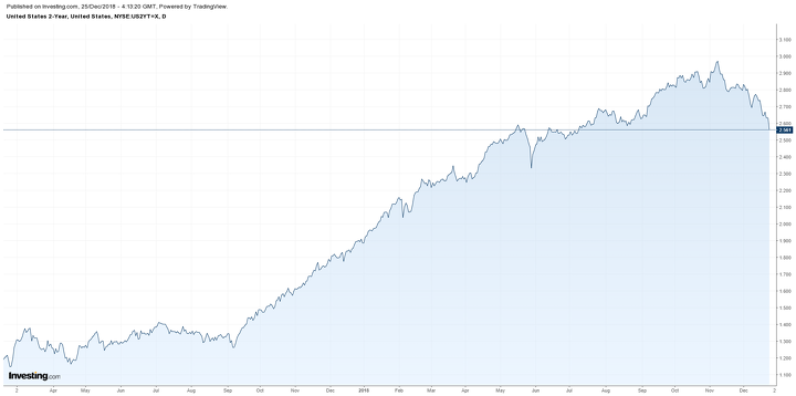 Финансовые рынки США в день перед Рождеством снижались на фоне приостановки работы правительства. Индустриальный индекс Dow Jones потерял 2,91%, более широкий индекс S&P 500 просел на 2,71%, а высокотехнологичный Nasdaq снизился на 2,43%.