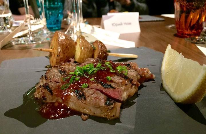 К рибай стейку EAST в остром соевом соусе подали красные – американское California Zinfandel от Beringer и чилийское Carmenere от Montes из долины Кольчагуа.