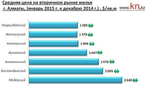 По данным аналитической службы kn.kz, в январе 2015 по отношению к декабрю 2014 во всех районах города изменения средних запрашиваемых цен незначительны.