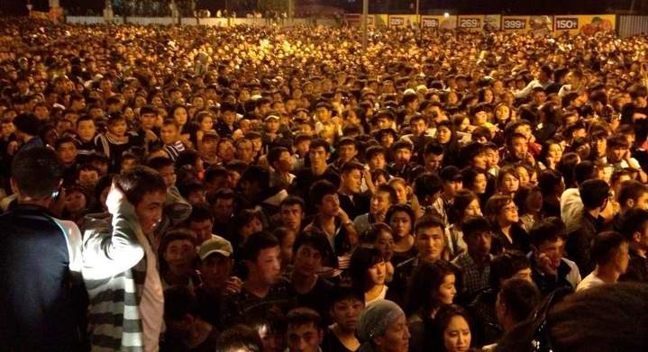Во время концерта, организованного в субботу на парковке перед торгово-развлекательным центром (ТРЦ) «Прайм-Плаза», зрители прорвали заграждение и ринулись на сцену, где выступал Кайрат Нуртас. Охрана увела исполнителя со сцены, что вызвало ярость зрителей, начавших крушить аппаратуру, сцену, сам ТРЦ, разбивать автомашины, а также оказывать сопротивление сотрудникам полиции. После прибытия на место происшествия дополнительных сил полиции беспорядки были пресечены.