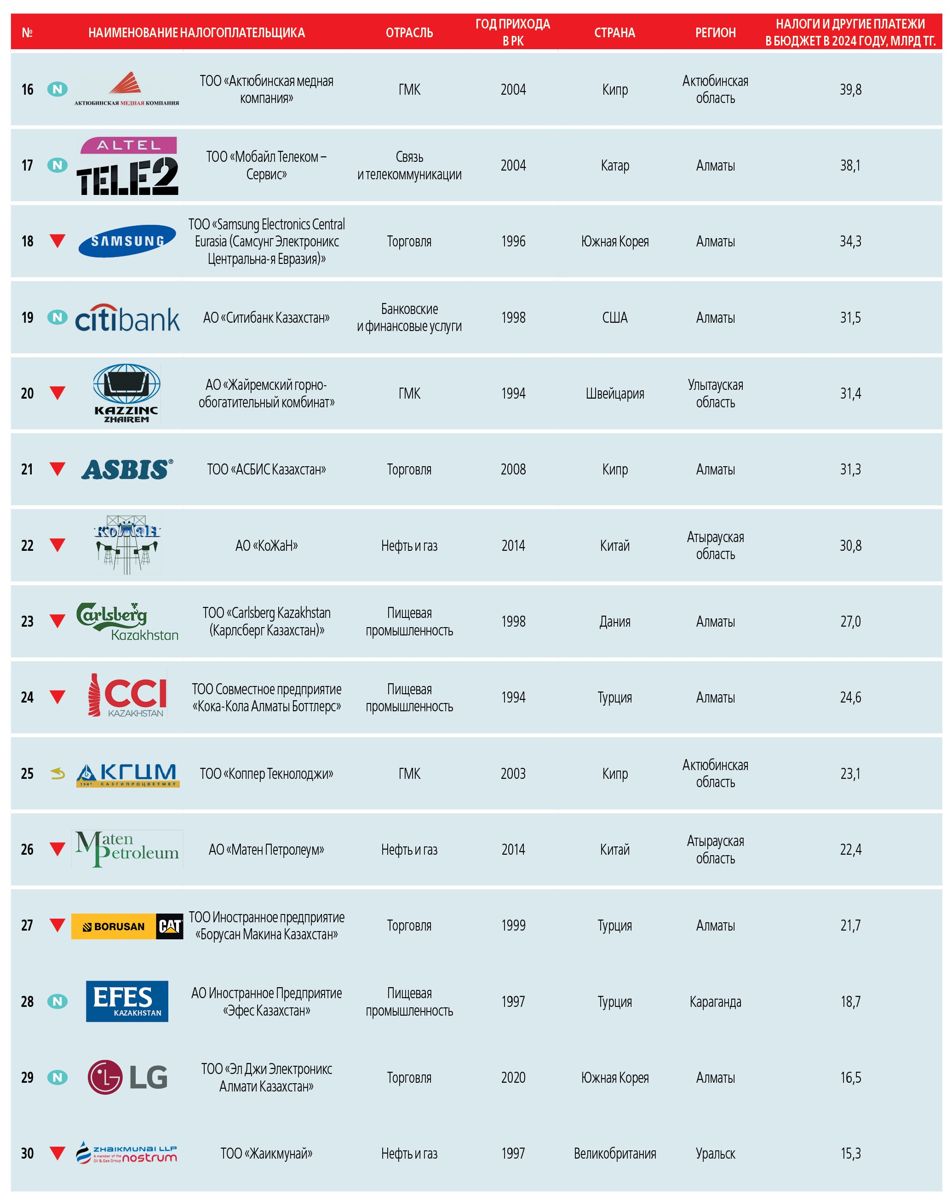 Среди прочих компаний в топ-30 вошел представитель финансового сектора — американский банк АО «Ситибанк Казахстан» (№ 19) с выплатами в размере 31,5 млрд тенге.