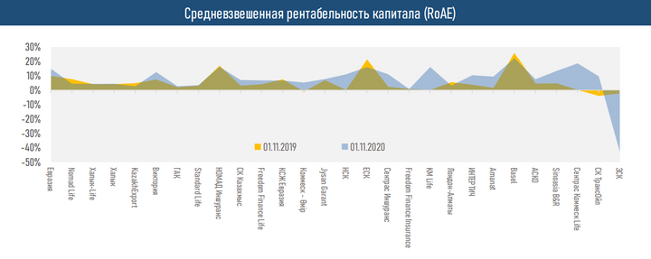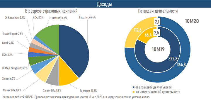 Чистая прибыль сектора за 10 месяцев 2020 года составила 105,7 млрд тенге, что на 52% выше в сравнении с аналогичным периодом прошлого года. При этом почти 40% чистой прибыли сектора приходится на СК «Евразия».