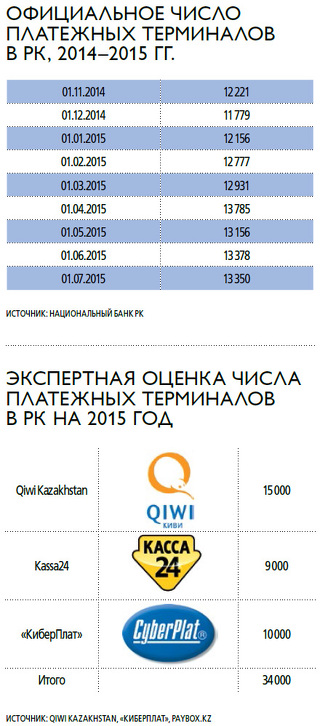 Таким образом, совокупно сеть SST в Казахстане насчитывает около 34 тыс. терминалов. Интересно, что, согласно статистике Нацбанка, на июль 2015 количество аппаратов составило всего