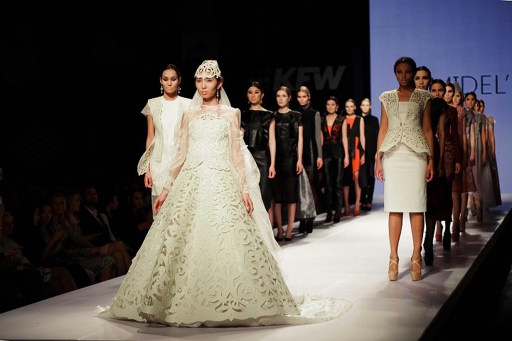 Зарубежные гости приехали на KFW как с Запада, так и с Востока. Узбекские дизайнеры представили не только ожидаемое использование традиционного орнамента икат и вышивки сюзане в коллекциях Lali и Khafiz-Khan, но и тотальное господство белоснежных хлопковых платьев с кружевами от Nur by Malika Irgasheva.