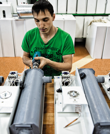 «Келет» поставляет предприятиям различных отраслей и физическим лицам электродвигатели, вентиляторы, компрессоры, насосы, калориферы, пускорегулирующую аппаратуру, ветрогенераторы, солнечные генераторы, станции для систем орошения. «Наш технический отдел спроектировал электрокотлы от 6 до 1 тыс. киловатт, в год мы их изготовляем 5–6 тыс. Покупаем в Венгрии теплообменники, которые присоединяем к нашим котлам, и они могут нагревать 100 кубометров воды за 18 часов до 30 градусов. Впечатляет? – интересуется Александр Адальбертович, продолжая перечислять достижения «Келета»: – Мы спроектировали, получили патент и теперь выпускаем консольные насосы из деталей, закупаемых в России и Китае. В год поставляем на рынок 28 тыс. насосов. Собираем многонасосные автоматические станции для поддержания давления в высотных домах.