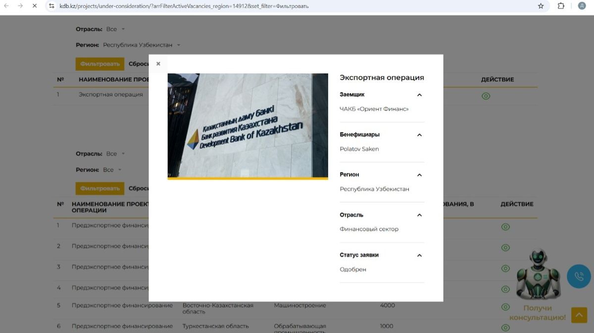 Между тем, при подготовке материала карта проекта «Экспортная операция в Республике Узбекистан в финансовом секторе» была удален с сайта БРК.