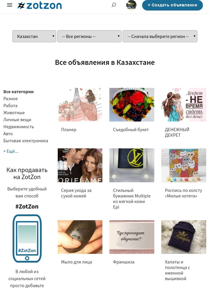 Ведь, несмотря на то что в социальных сетях продаётся колоссальное количество товаров и представлены тысячи мастеров в разных сферах, найти именно то, что ты ищешь, крайне проблематично. А Zotzon выступил помощником в этом поиске, ведь все объявления распределены по категориям и регионам, так что вы без труда найдёте мастера по маникюру в своём городе или купите детские вещи с доставкой по стране - просто задайте нужные параметры поиска.