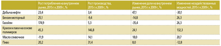В таблице отображены цифры по динамике доли на внутреннем рынке и уровню загрузки производственных мощностей по отдельным видам товаров. По ним мы можем судить о реакции производителей на изменение рыночной ситуации.