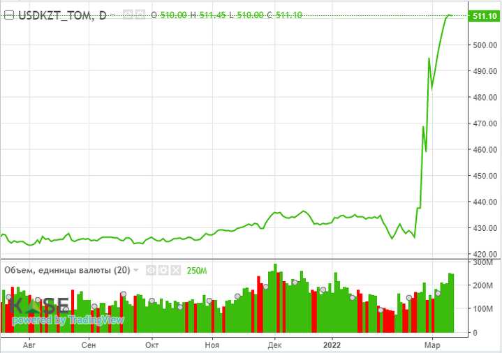 По итогам пятницы, 11 марта, средневзвешенный курс USDKZT вырос до 510,84 тенге за доллар (+0,91 тенге) при повышенном объеме торгов – $249,9 млн (-$2,2 млн). Давление на нацвалюту помимо внешних фундаментальных факторов продолжают оказывать негативные настроения участников локального рынка. Для удовлетворения возросшего спроса на наличную инвалюту Нацбанк прорабатывает вопрос о ее дополнительных поставках из Федрезерва США. Также для противодействия спекуляциям на валютном рынке и покрытия рисков участников финрынка регулятор предложил расширить пределы отклонения курса покупки от курса продажи инвалюты через обменные пункты (для доллара США – с 6 тенге до 15 тенге, евро – с 7 до 20 тенге).