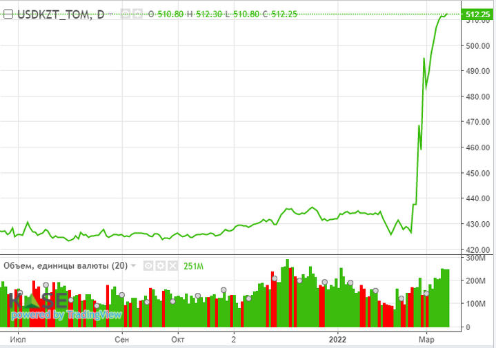 По итогам торгов понедельника, 14 марта, средневзвешенный курс тенге к доллару США продолжил умеренно снижаться и составил 511,74 тенге за доллар (+0,9 тенге). Объём торгов по-прежнему оставался повышенным и составил $250,9 млн (+$1,0 млн). Ослабление тенге, среди прочего, связано с сохранением геополитической неопределенности, падением цен на нефть (см. ниже), а также с сохранением повышенного спроса на инвалюту со стороны населения. Отметим, что в качестве одной из мер по предотвращению рисков финстабильности и снижения спекулятивного спроса (в том числе со стороны граждан РФ) казахстанские власти ввели ограничения на вывоз из страны наличной инвалюты в эквиваленте более $10 000 и золота свыше 100 грамм.