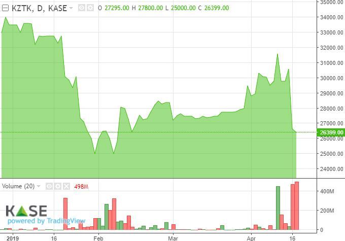 Ранее АО «Кcell» проинформировало о получении письменного уведомления от ТОО «Кар-Тел» о прекращении сотрудничества в рамках Соглашения о совместном использовании сети в Казахстане. Данное уведомление, связанное с приобретением АО «Казахтелеком» 75% акций АО «Кселл», прекращает действие Соглашения и накладывает на АО «Кселл» обязательство по выплате штрафа в размере 14,5 млрд тенге. Между тем продажи наблюдались также в акциях АО «Народный Банк» (-2,32%), АО «Kcell» (-1,01%) и АО «КазТрансОйл» (-0,79%). Из прошедших событий отметим новость о том, что акции Polymetal Inc будут торговаться на бирже Международного финансового центра «Астана» AIX с 24 апреля, а также подтверждение руководством АО «Казахтелеком» планов по SPO в I полугодии текущего года на AIX.