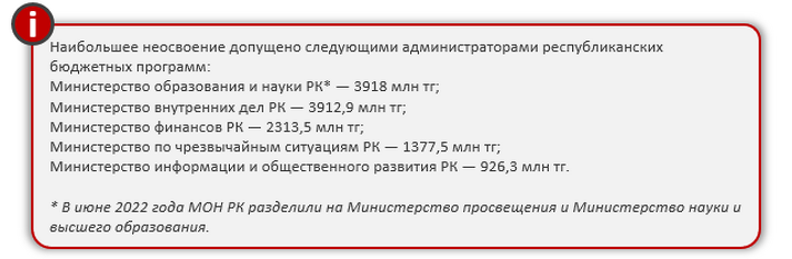 Какие казахстанские министерства допустили самое значительное неосвоение бюджетных средств