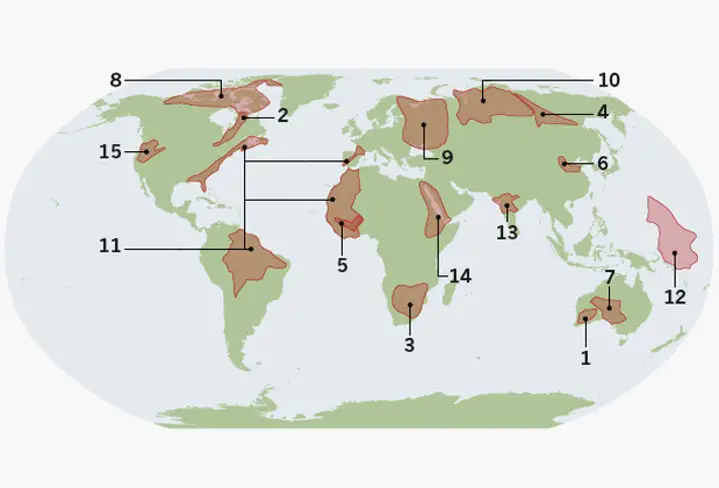 Самая древняя такая провинция возникла примерно 2,42 миллиарда лет назад на юго-западе современной Австралии, а самая молодая — примерно 17 миллионов лет назад на западе Северной Америки, где в настоящее время находится Йеллоустонский вулкан.