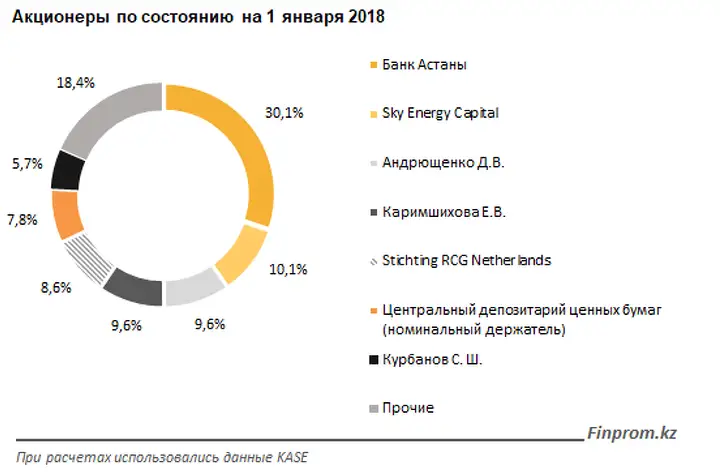 Список крупнейших акционеров компании по состоянию на 1 января 2018 года состоит из 7 физических и юридических лиц. Крупнейшим акционером с долей 30,12% является Банк Астаны.